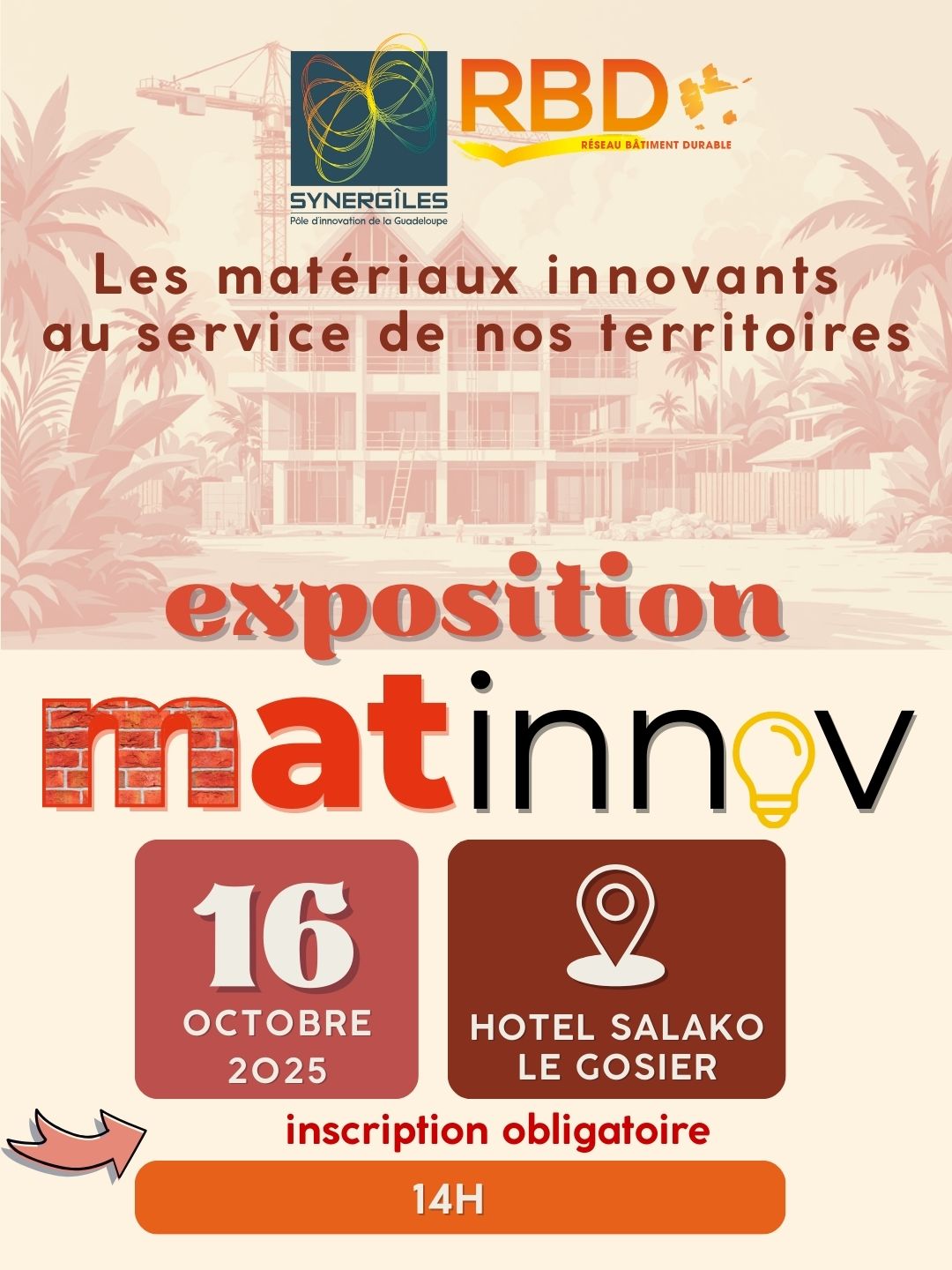 Synergîles a le plaisir de vous convier à MAT’INNOV, un après-midi dédié à l’innovation dans le bâtiment tropical. Cet événement s’adresse tout particulièrement aux maîtres d’ouvrages, maîtres d’œuvres, artisans et professionnels du secteur, qui y trouveront des solutions concrètes et inspirantes pour relever les défis actuels de la construction durable.